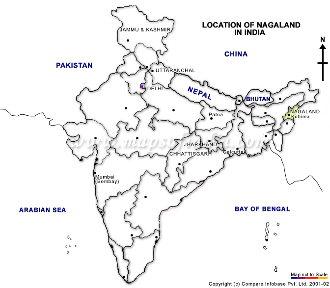 Nagaland is situated on the extreme northern east just below Arunachal Pradesh. It has on its long eastern strip the neighboring country Myanmar. The north is bounded by Arunachal Pradesh, while on its west lies the state of Assam. It is bordered by Manipur on its south.